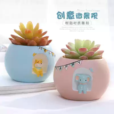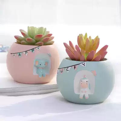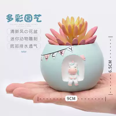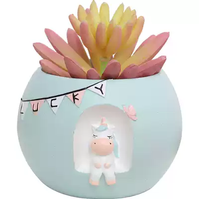 Looking up at the starry flower pot-Little blue elephant looking up at the starry flower pot-Shibai dog looking at the starry flower pot-Unicorn looking up at the starry flower pot-Rabbit