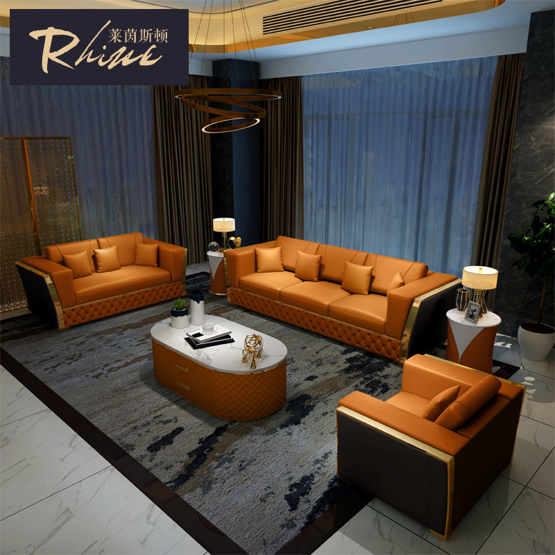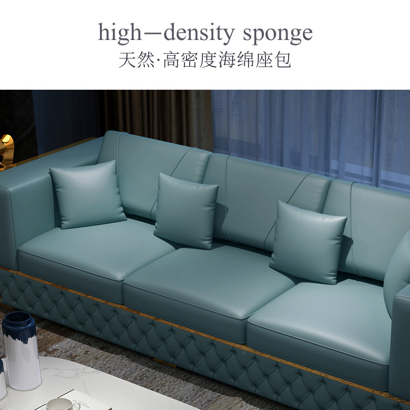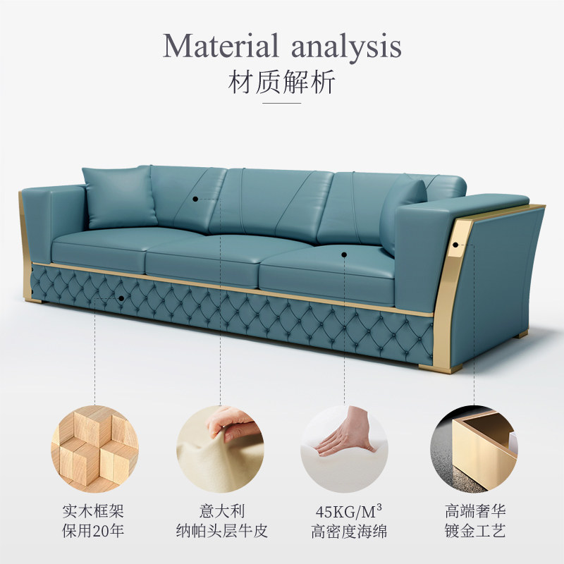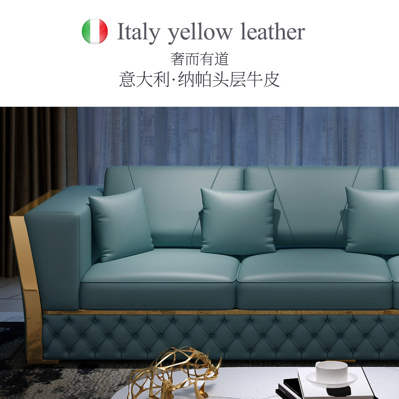 Italian light luxury leather sofa head layer cowhide leather large-sized Hong Kong-style living room post-modern leather sofa blue