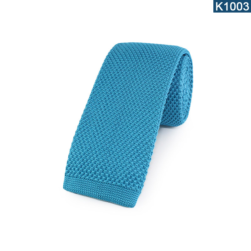 Trend new fashion blue wool flat head small tie 5 5 men's party business formal dress monochrome knitted narrow version