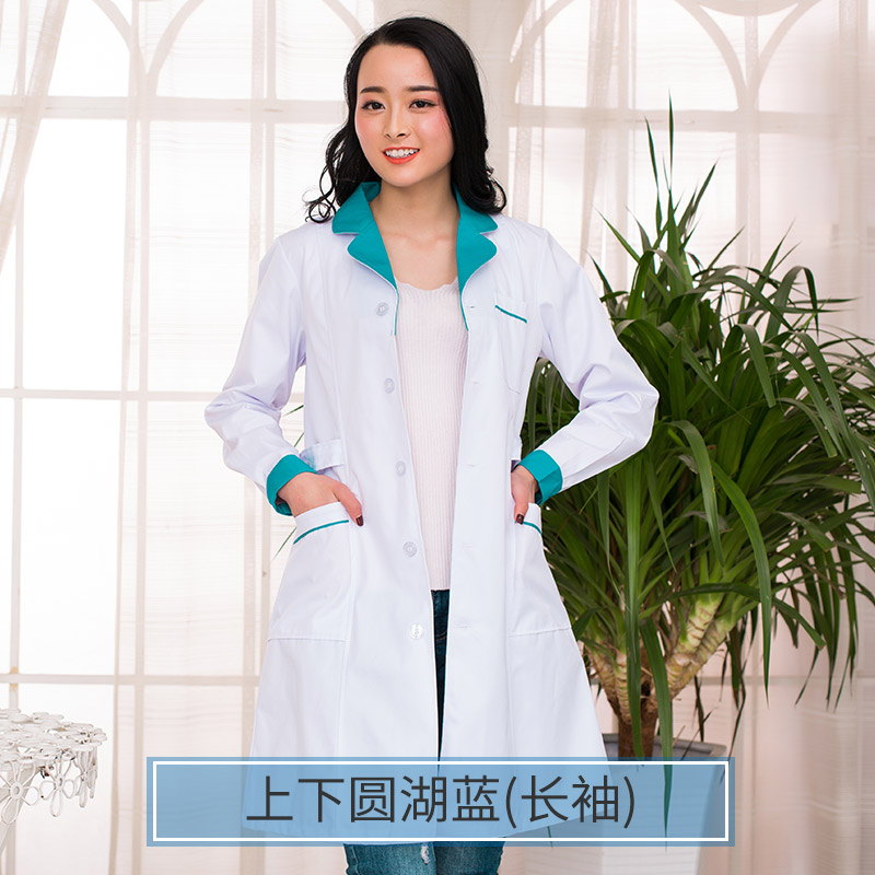 Upper and lower round collar blue short sleeves upper and lower round collar lake blue long sleeves