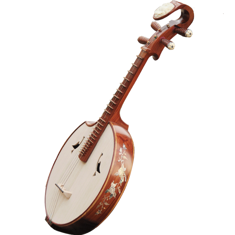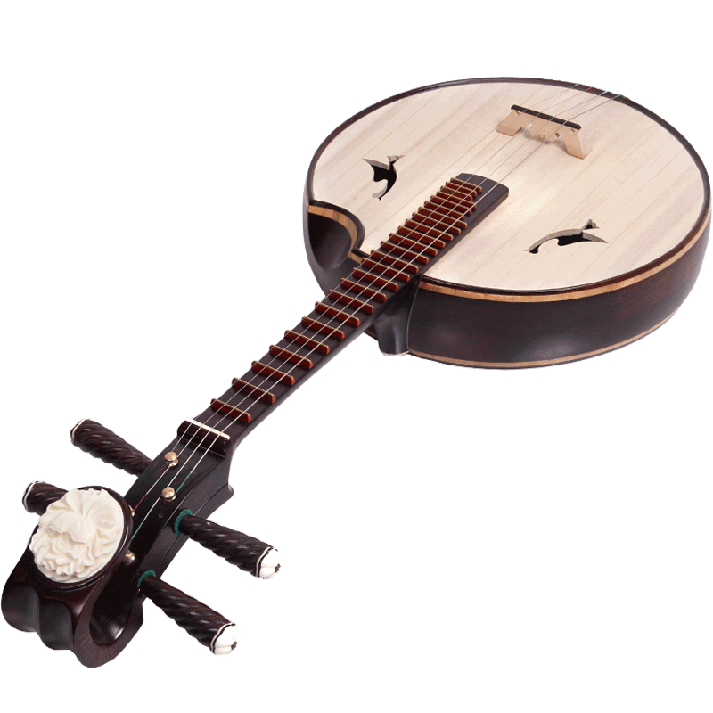 Fan Nest Plucked instrument Zhongruan beginner introduction Mahogany inlaid peony flower band Troupe performance piano Adult Ruan Qin