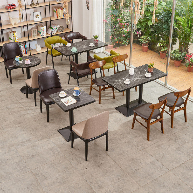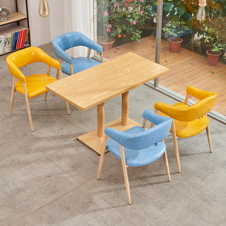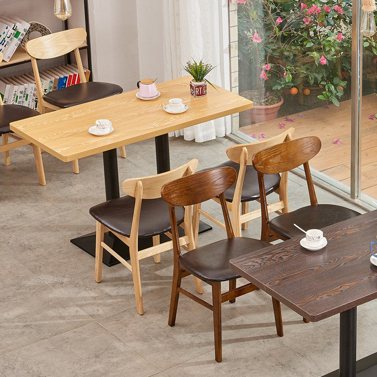 Upgrade A-shaped chairs with iron black feetUpgrade A-shaped chairs with iron wood grain feet and solid wood square chairsSmall chairs with iron black feet and solid wood chips chairs