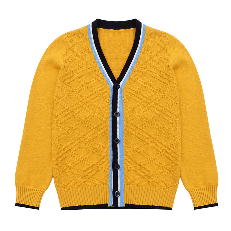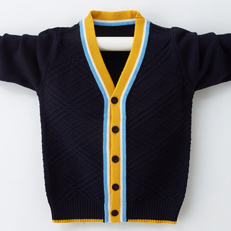 Boys' cardigan sweater coat spring and autumn new children's knitted sweater in big children's pure cotton Korean style foreign style sweater