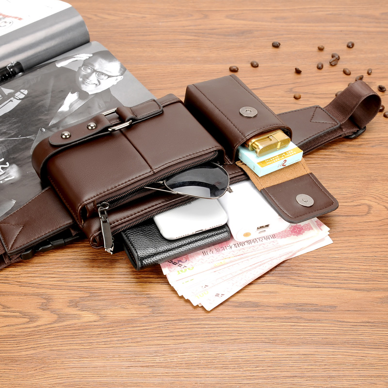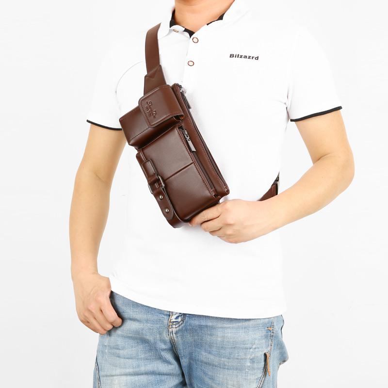 Pocket Men's leather Bull Leather Multifunction Han Edition Large Capacity Chest Baotou Layer Bull Leather Small Satchel Phone Bag Zero Wallet