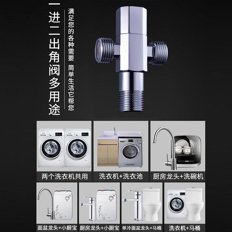 Double 4-point outer wire 4-point outer wire +4-point washing machine Double 4-point washing machine with check valve 4-point washing machine +6-point washing machine 4-point outer wire+6-point washing machine 4-point outer wire+4-point water-stop washing machine connector 4-point outer wire+4 6 double interface Double-6-point washing machine Connection tee joint + automatic water cut-off 4-point washing machine connector Connecting three-way connector +4-minute 6-point washing machine connector One-in-two-out water connector (can install faucet angle valve bathtub) One-in-two-out water connector (4-point washing machine) One-in-two-out water connector (6-point washing machine) One-in and two-out water distribution joint (divided into 4 double washing machines) One in two outlet water distribution joints (divided into 4 points + 6 points washing machine) One in two outlet water distribution joint with switch (can be installed faucet angle valve bathtub) One in two outlet water distribution joint with switch (divided into 4 points washing machine) One in two outlet water distribution joint with switch (divided into 6 points washing machine) One in two water distribution joint with switch (divided into double 4 point washing machine) Left and right independent control corner valve (connected to 4 point washing machine) Left and right independent control corner valve (universal to all washing machines) Left and right independent control corner valve black (connected to 4 point washing machine) Left and right independent control angle valve black (common to all washing machines) Single outlet corner valve (same style)