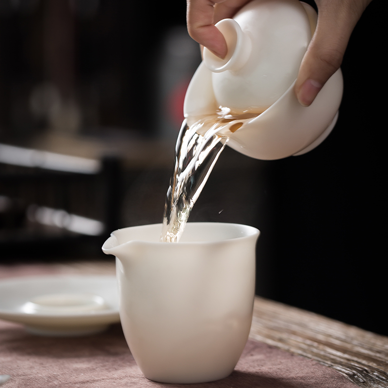 Dehua white porcelain fair cup Ceramic tea Sea Gongfu tea set Handmade sheep fat jade large tea separator Pure white tea set
