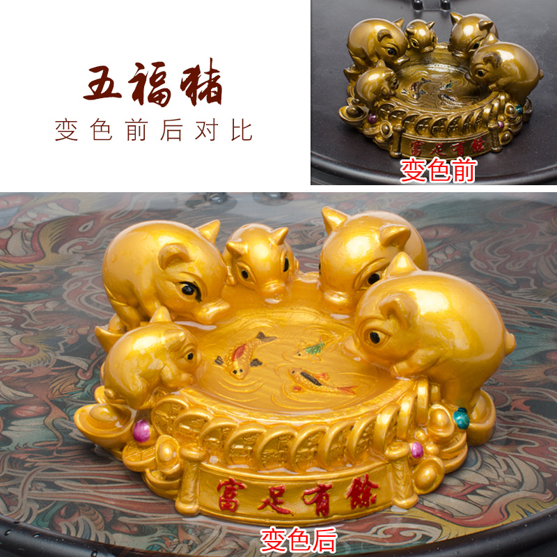 Wufu pig tea pet decoration boutique color-changing piggy drinking water tea table tea table tea art year of the pig pet tea set accessories