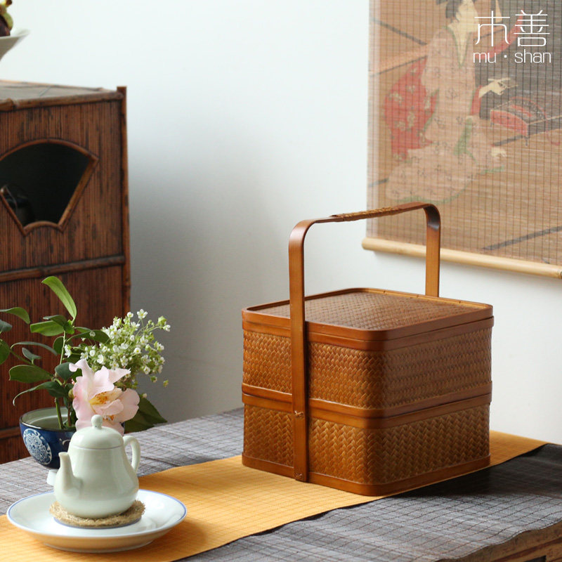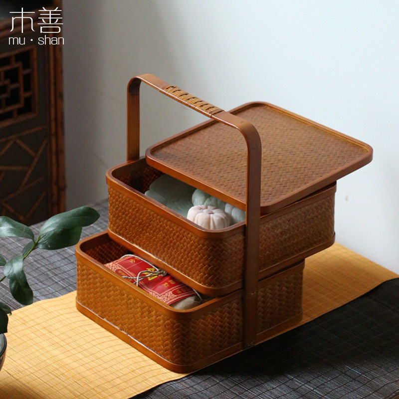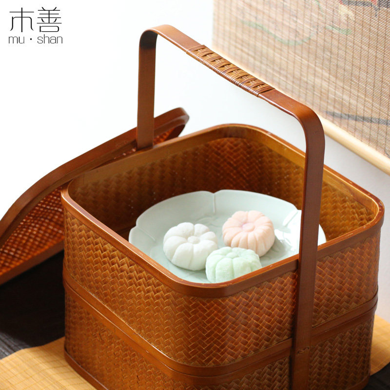Day Style Bamboo-made Contained Basket Food Box Picnic Basket Dish Snack Bowl Mooncake Gift Box Chinese-style suitcases