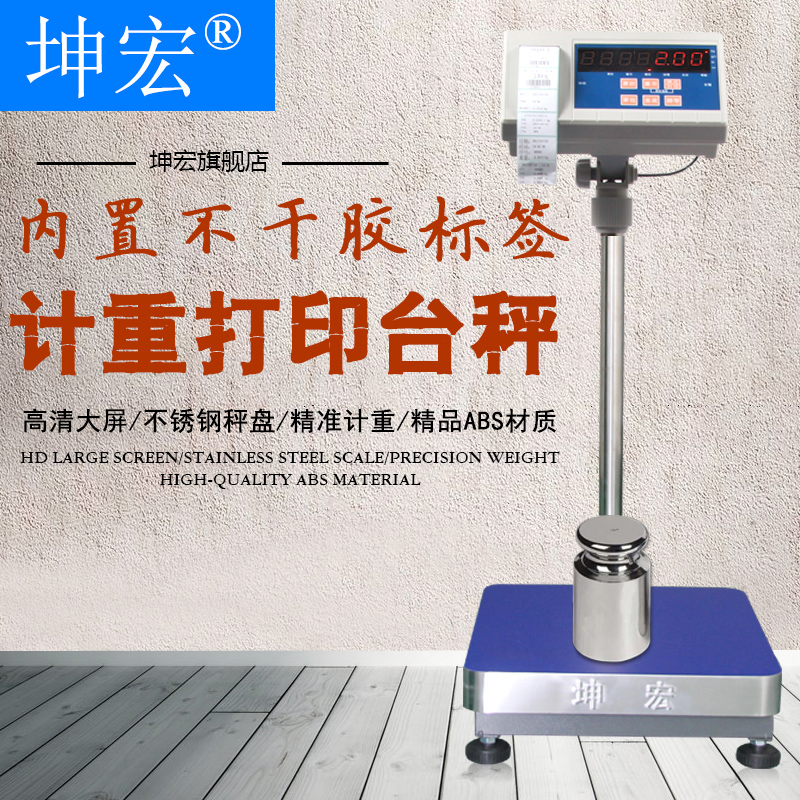 Kunhong industrial barcode scale built-in self-adhesive weighing barcode label printing platform scale printing weighs 30-500kg