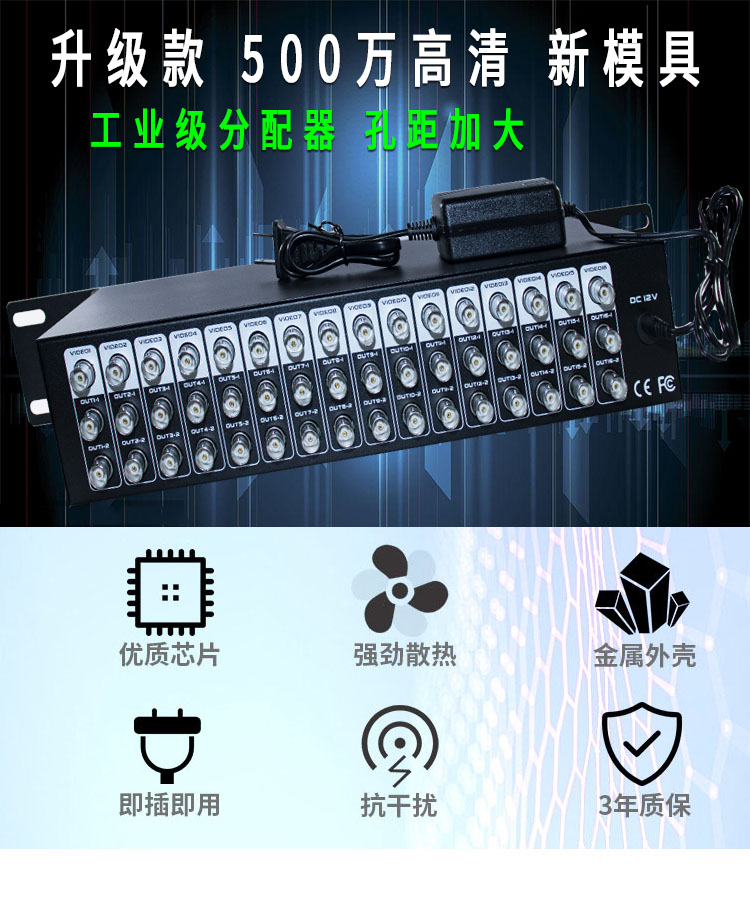 BNC16 into 32 out of video splitter coaxial high-definition 16-way one-to-two splitter HDCVI TVI AHD