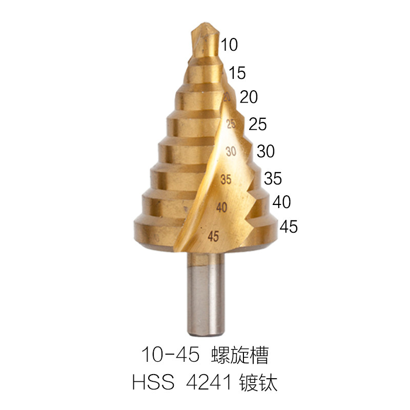 High speed mesh Plated Titanium Ladder Drilling Spiral Groove Triangle Iron Plate Driller Multifunction Metal Pagoda Drill 10-45