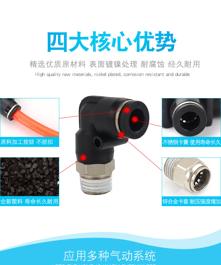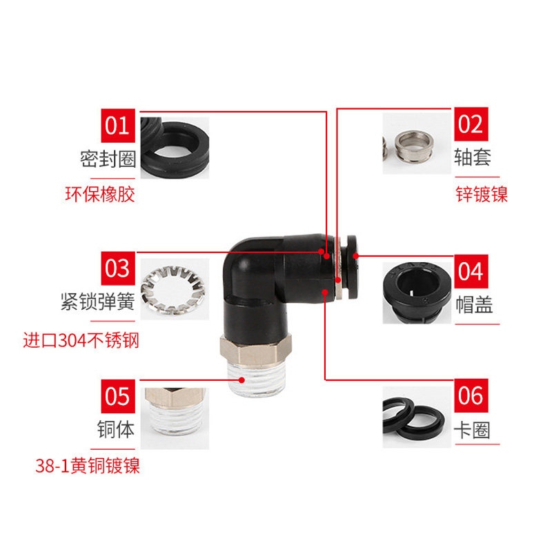 Pneumatic boutique black external thread corner corner corner joint PL8-02 4-M5 6-01 10-03 12-04