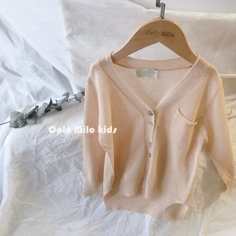 Girls' Ice Silk Cardigan Air Conditioning Shirt Thin Section 2022 Spring and Summer Linen Baby Western Style Children's Sunscreen Coat