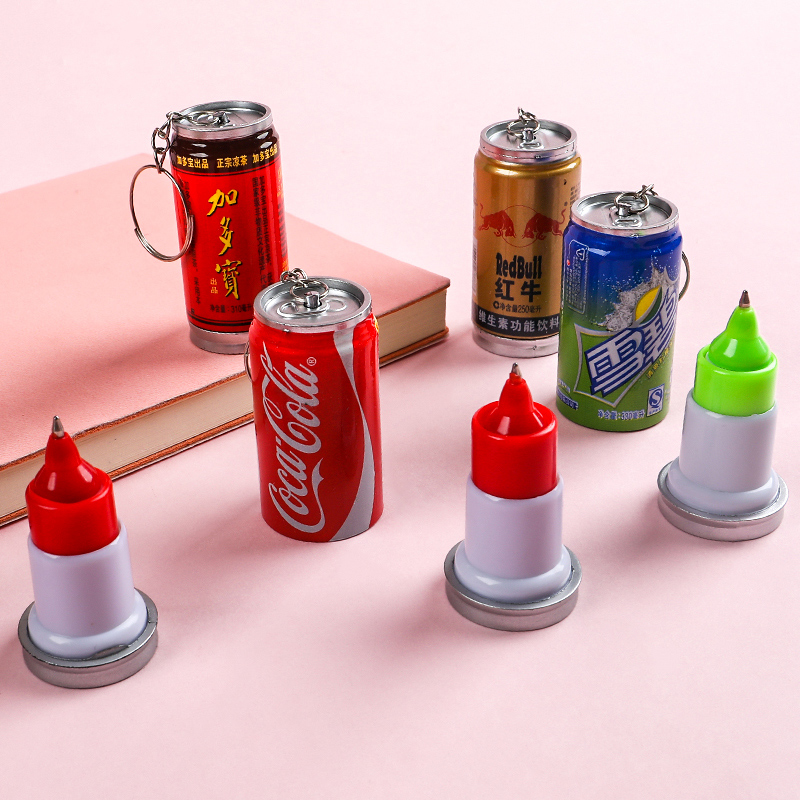 Can drink retractable blue ballpoint pen cute creative Korean mini pocket pen short carry-on pendant student prize creative reward portable pen children's kindergarten ballpoint pen
