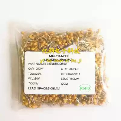 Monolithic capacitor 102 1NF 1000PF 50V Foot distance 5 08MM plusmn 20% Whole package 1000pcs