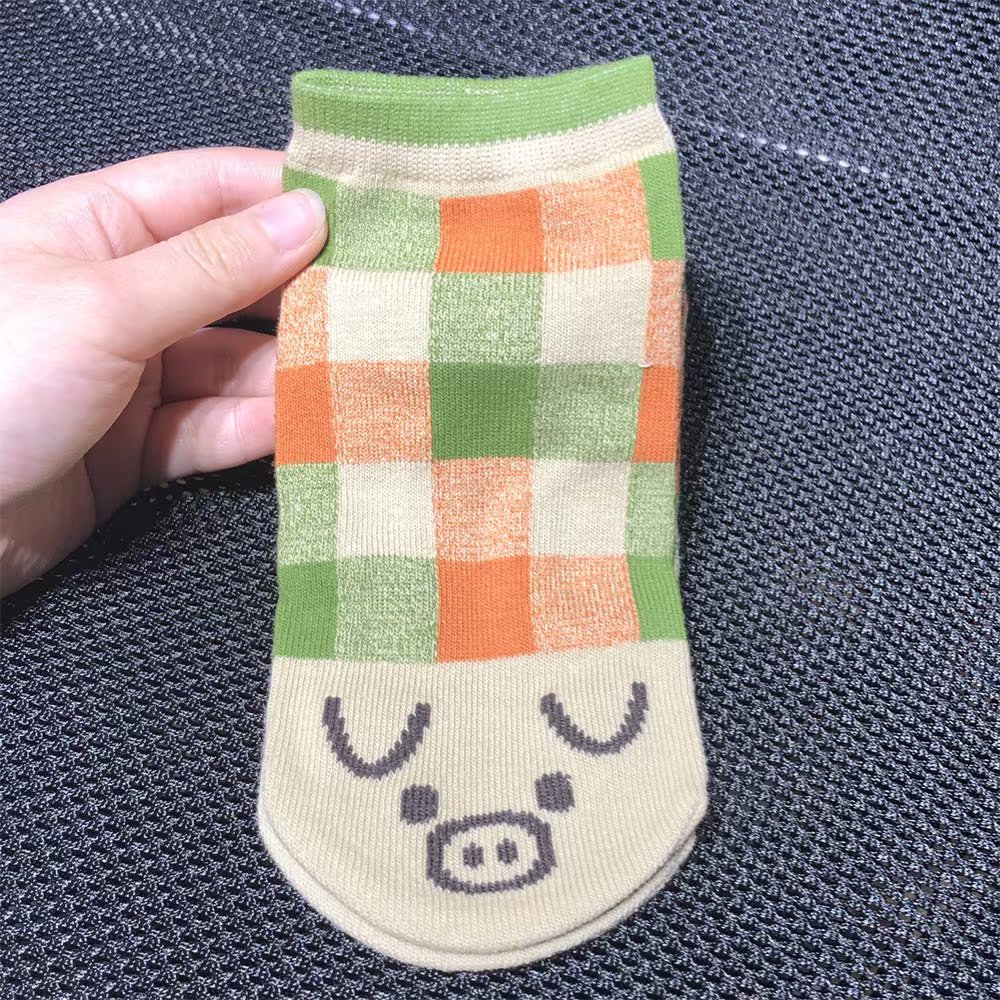 Foreign trade day single adult women's short socks boat socks cartoon cotton socks women's socks one size 35-38 spring and autumn socks plaid - Taobao