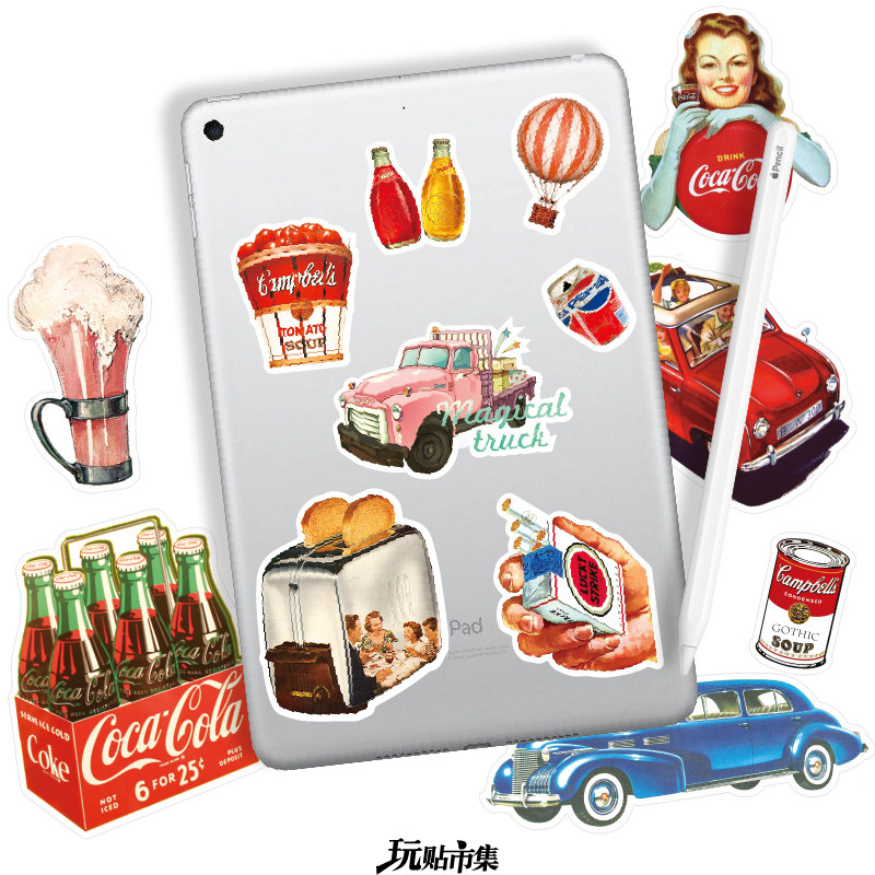 Retro nostalgic cola tide brand personality stickers suitcase luggage stickers computer refrigerator guitar skateboard waterproof