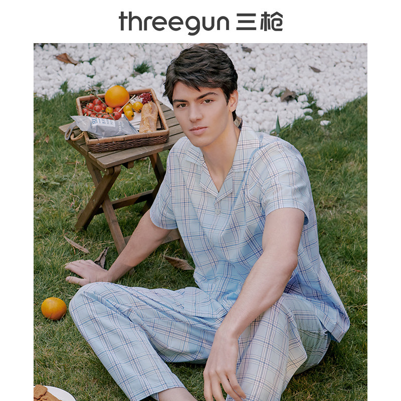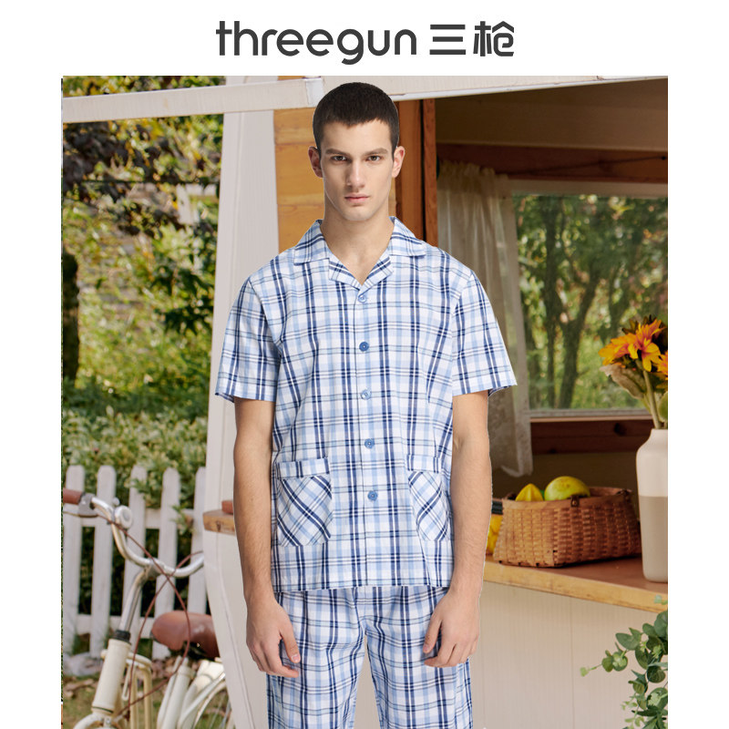 Three-gun lovers sleepwear suits spring and summer new pure cotton Caig capsized open brooder and casual stay-at-home boys' home