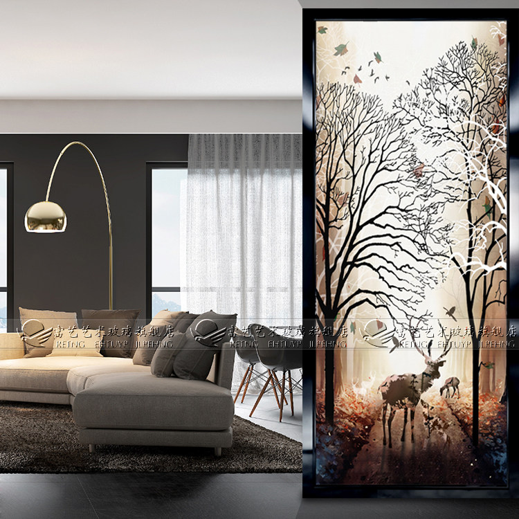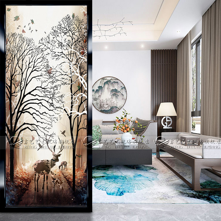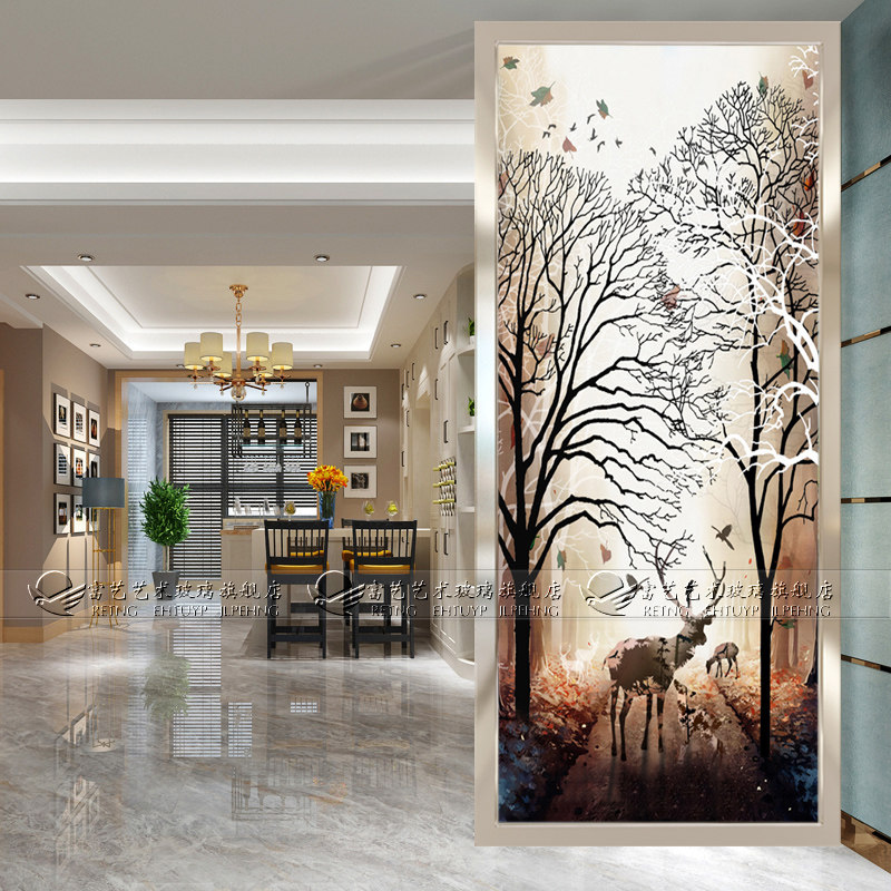 Art Glass Living Room Compartment Entrance Screen Aisle Background Wall Genguan Light Transmission Toughened Solid Sensation Fortune Deer