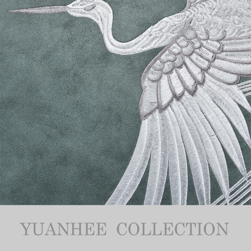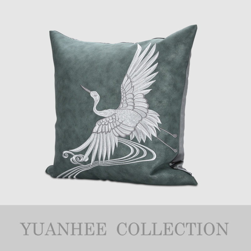 Yuanxi new Chinese light luxury model room cushion living room sofa back cushion Morandi crane embroidery pillow pillow