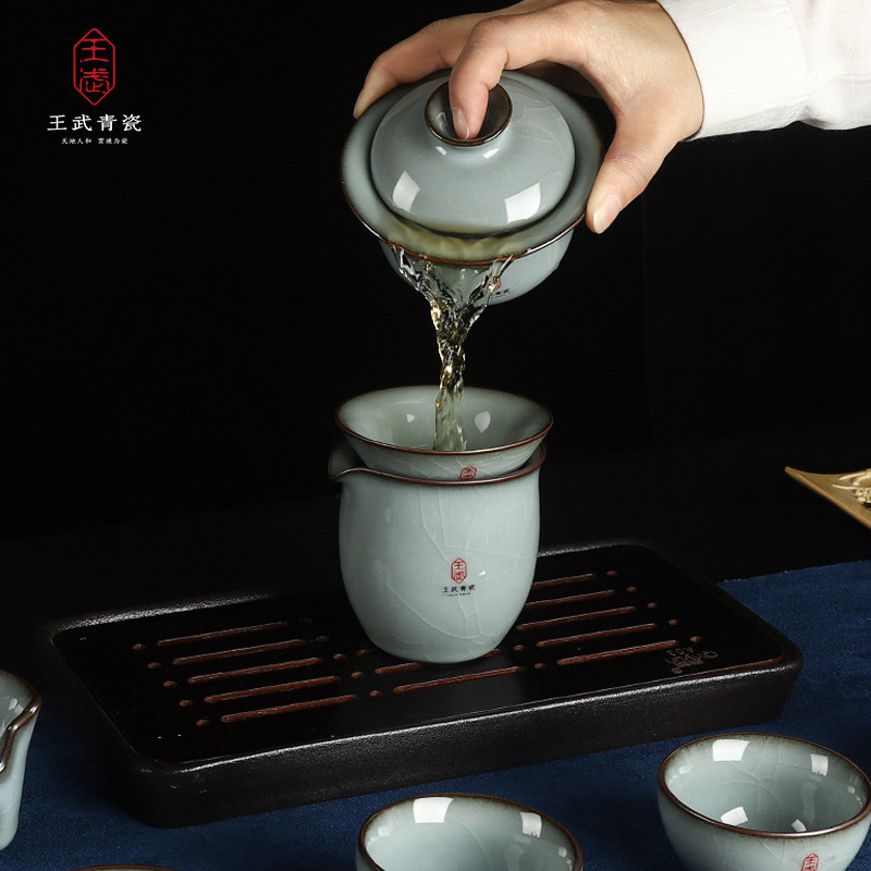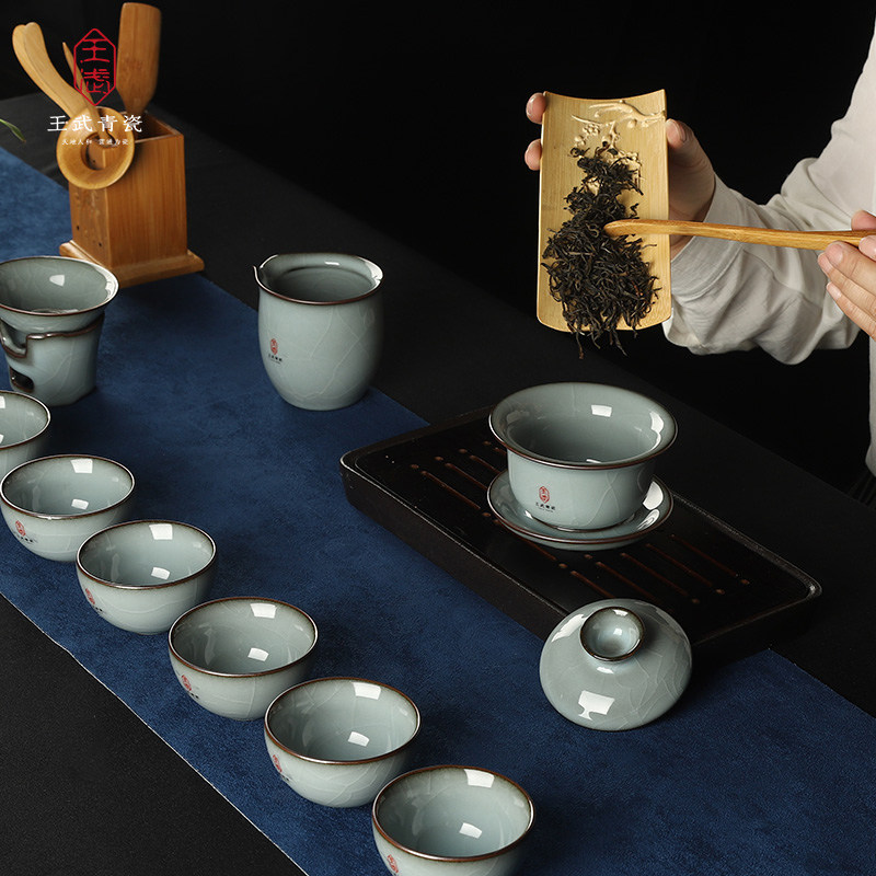 Wang Wuqing Porcelain Kung Fu Tea Set Artisanal Iron Kiln Iron Tire Ice Cracked Ceramic Lid Bowl Tea Cup Suit Home Gift Box Upscale-Taobao