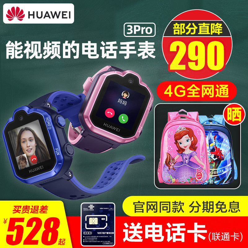 Huawei Children's Watches 3pro Smart Phone Watches Multifunction Film Call Photo 4g Full Netcom Waterproof Anti-Fall Gps Location Small Middle School Students Gifted for Girls and Girls Card Telecom Edition