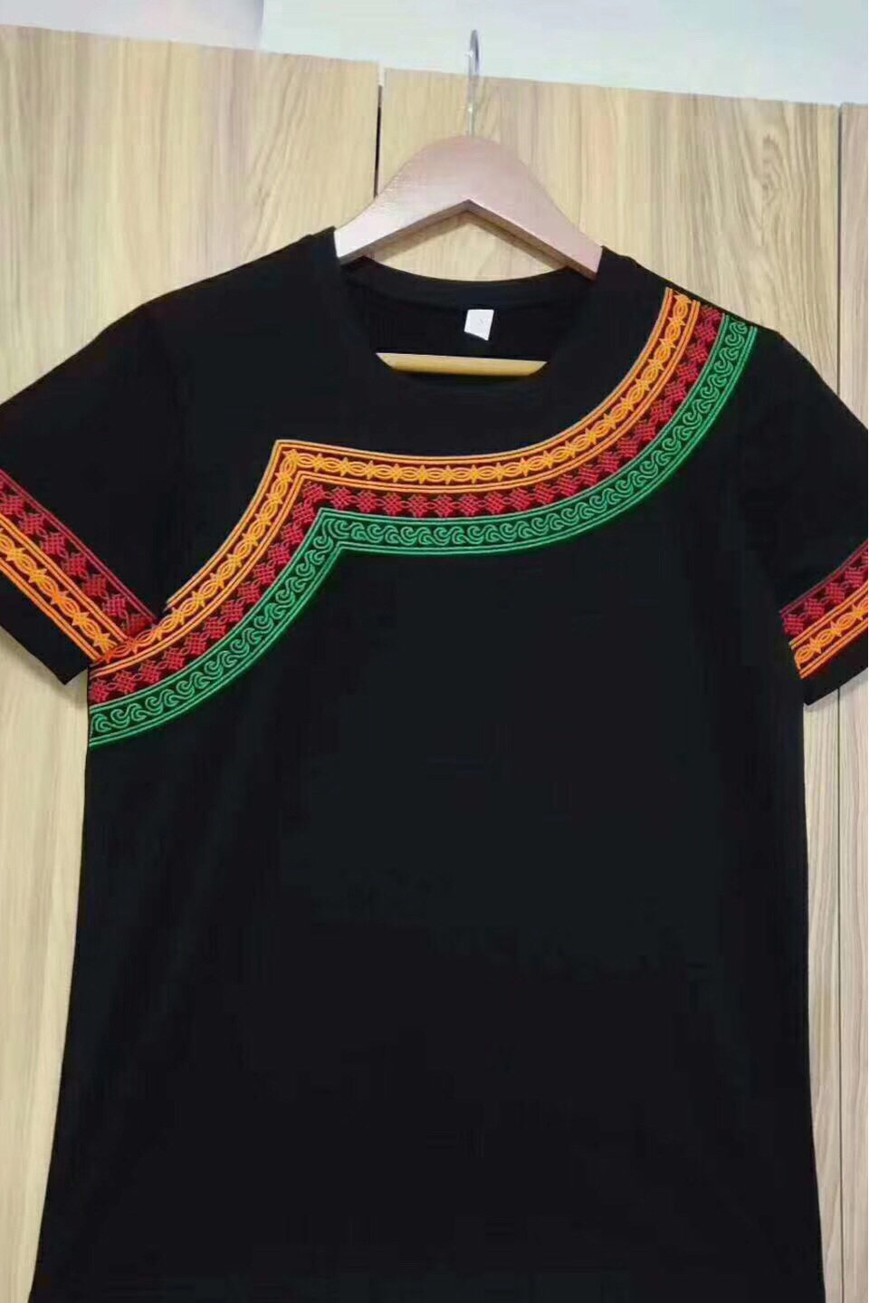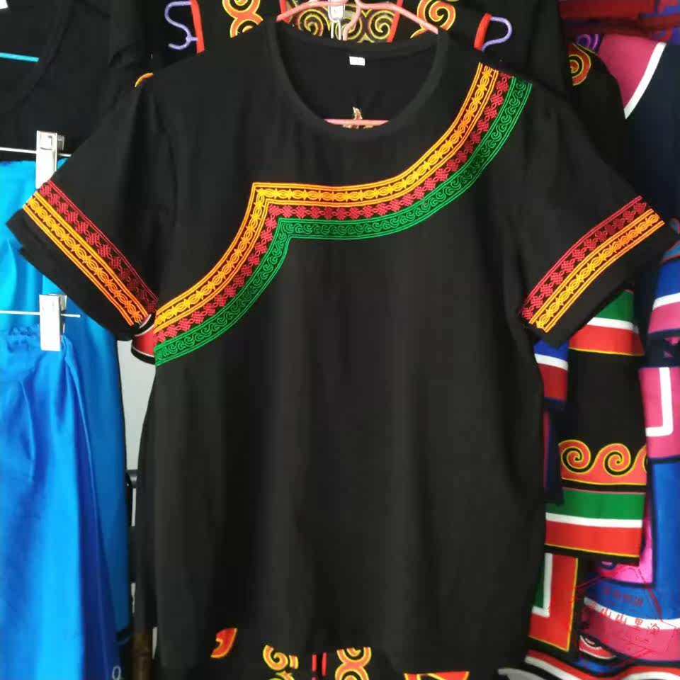 Yi Clothes Pure Cotton Embroidery Black T - shirt Yi Clothes T - shirt for men and women the same tops new style