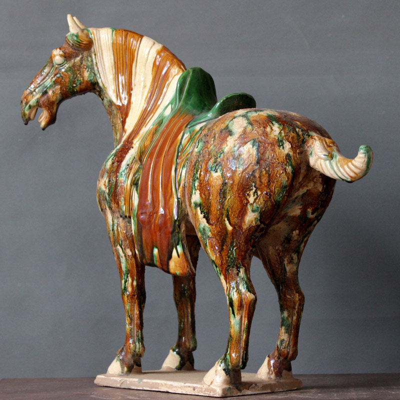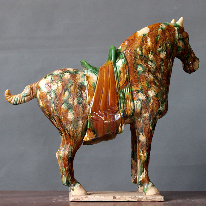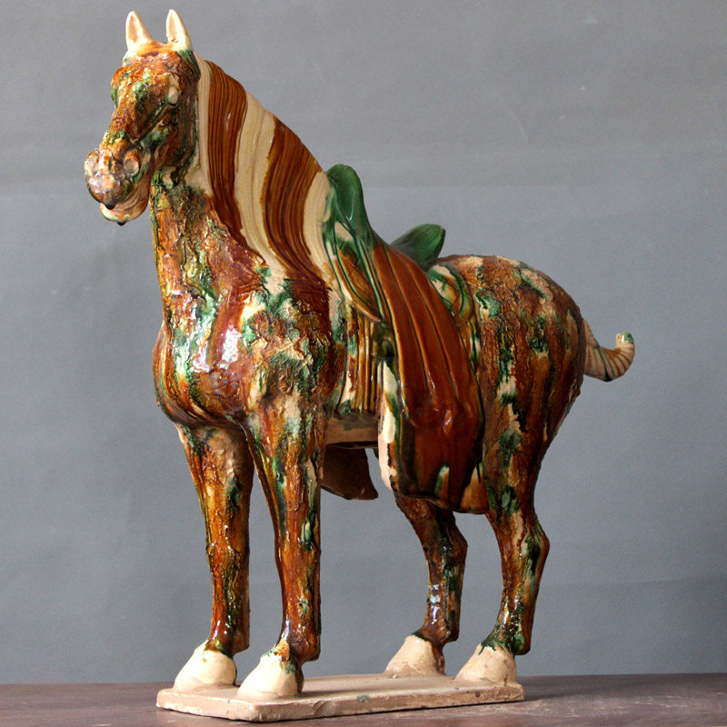 Tang San Color Ceramic Malaysia Antique Made Old Horse Swing Room Living Room Separation Wine Cabinet