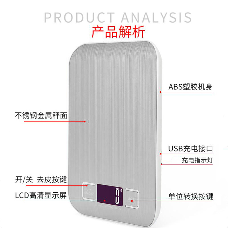 Rechargeable waterproof small electronic scale 10kg household kitchen scale precision baking weighs the weight of food and medicine in grams