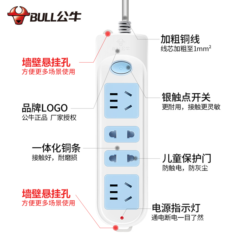 Bull plug socket plug wiring board 3 5 meters 2 4 6 8 plug household power extension line plug board with wire