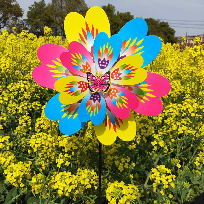 38 super large double-layer windmill dynamic cartoon windmill double-layer six-color windmill single-layer six-color plus flower windmill dynamic butterfly windmill zodiac drum windmill black pole six-leaf single-wheel windmill pine smiling face windmill Ferris wheel windmill