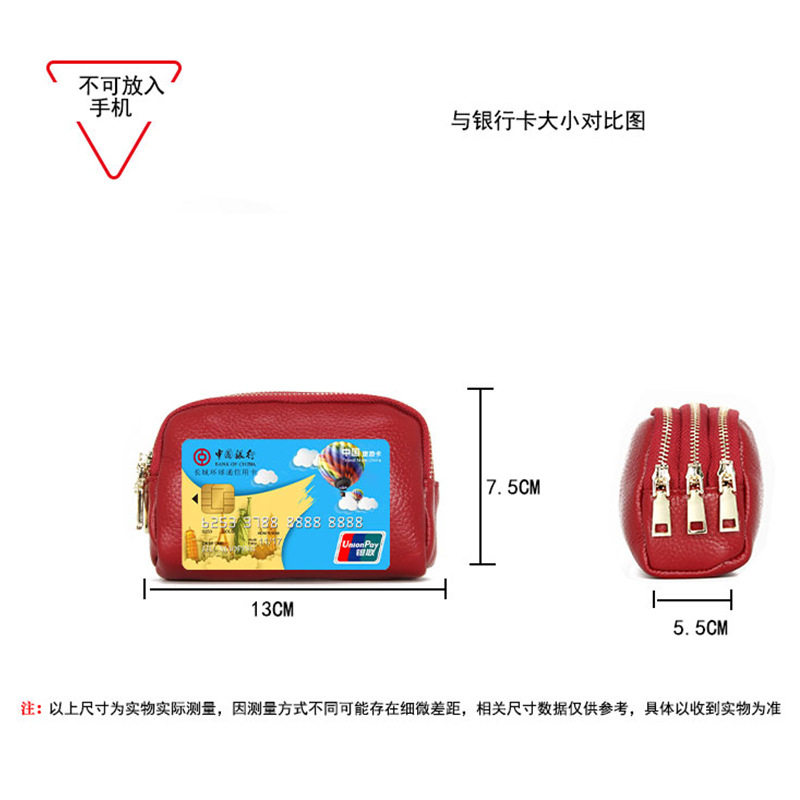 2021 new European and American first layer cowhide three-layer fashion mini coin purse leather hand grab bag key bag clutch bag