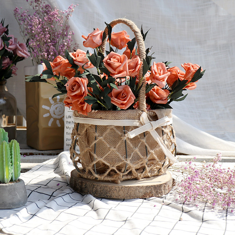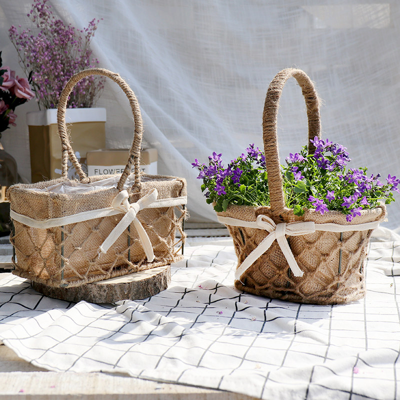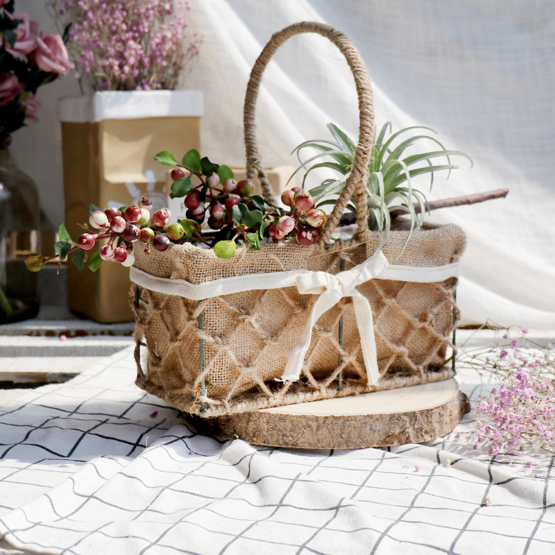 Creative hemp rope weaving portable flower basket Mori wind flower pot flower arrangement dried flower flower basket gift basket decoration green plant pot