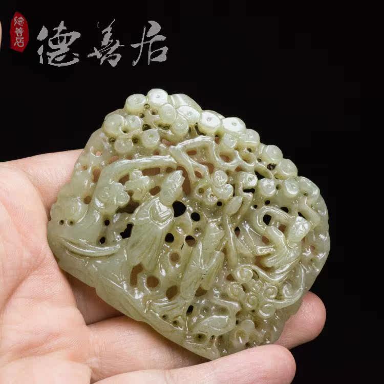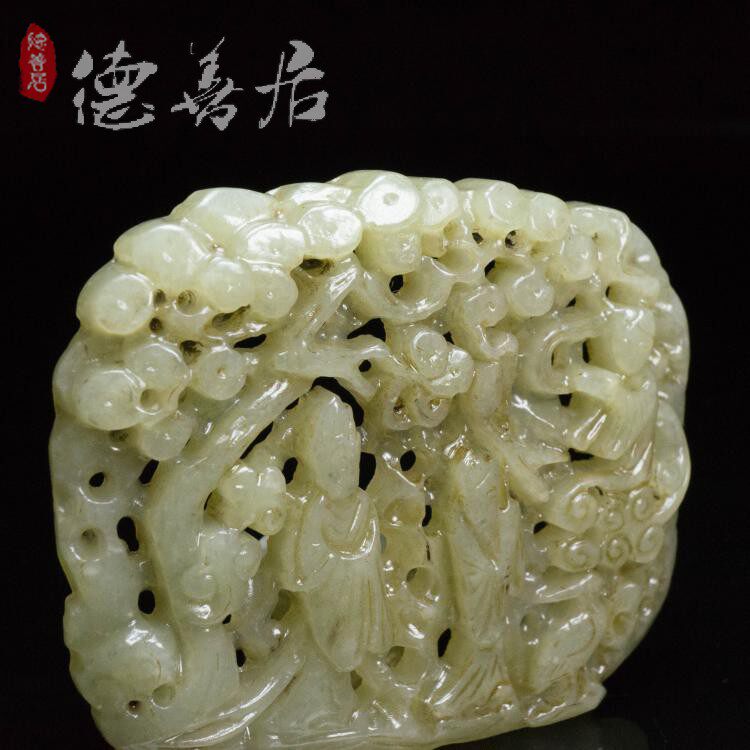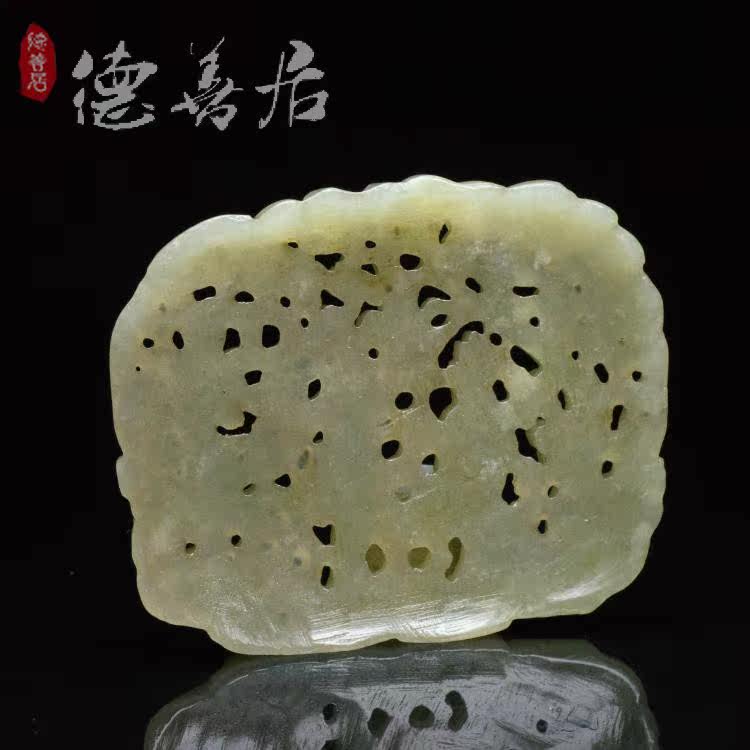 Qing Dynasty old Hetian YuSongxia female jade plate imitation ancient jade female figure jade pendant hollow relief green and white jade matching