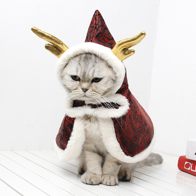 Guitzai Pet clothes kitty Down with New Chinese New Year's clothing New clothes for cat and cat autumn and winter Chinese wind dragon corner cloak clothing
