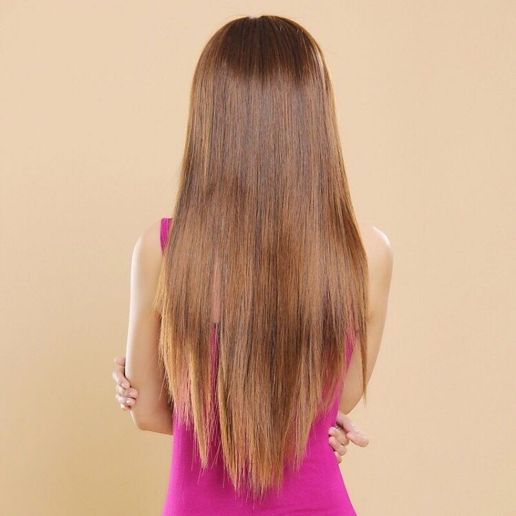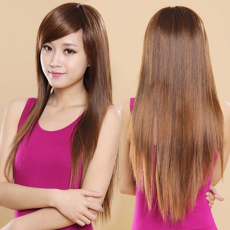 Wig female long straight hair Qi oblique bangs wig female whole wig headgear jiafa sweet fashion face repair realistic