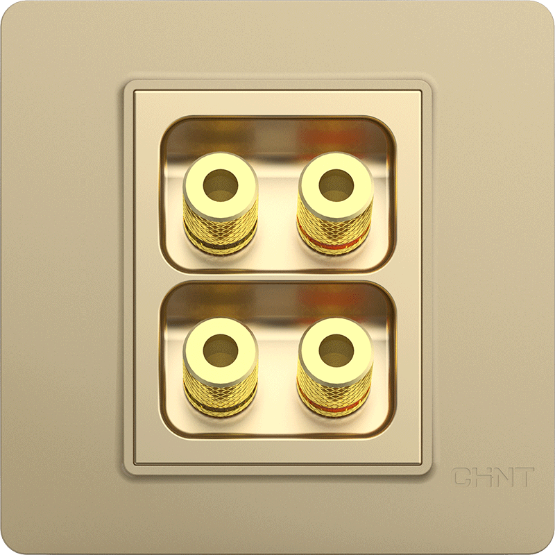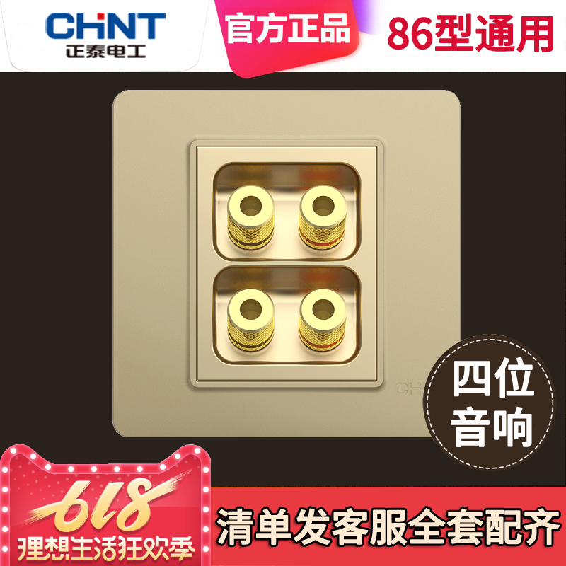 Zhengtai champagne gold four-hole audio socket panel 86 type concealed speaker head interface four-digit audio socket wall plug
