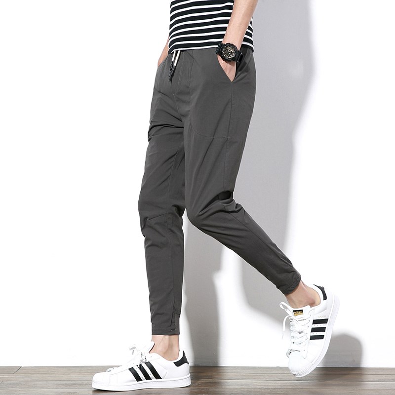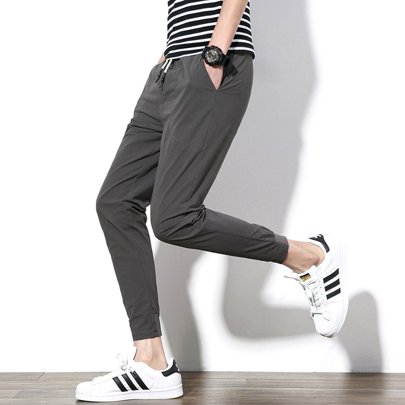 Trendy new men's summer thin section slim fit all-match solid color cigarette pants new Japanese trend harem nine-point pants