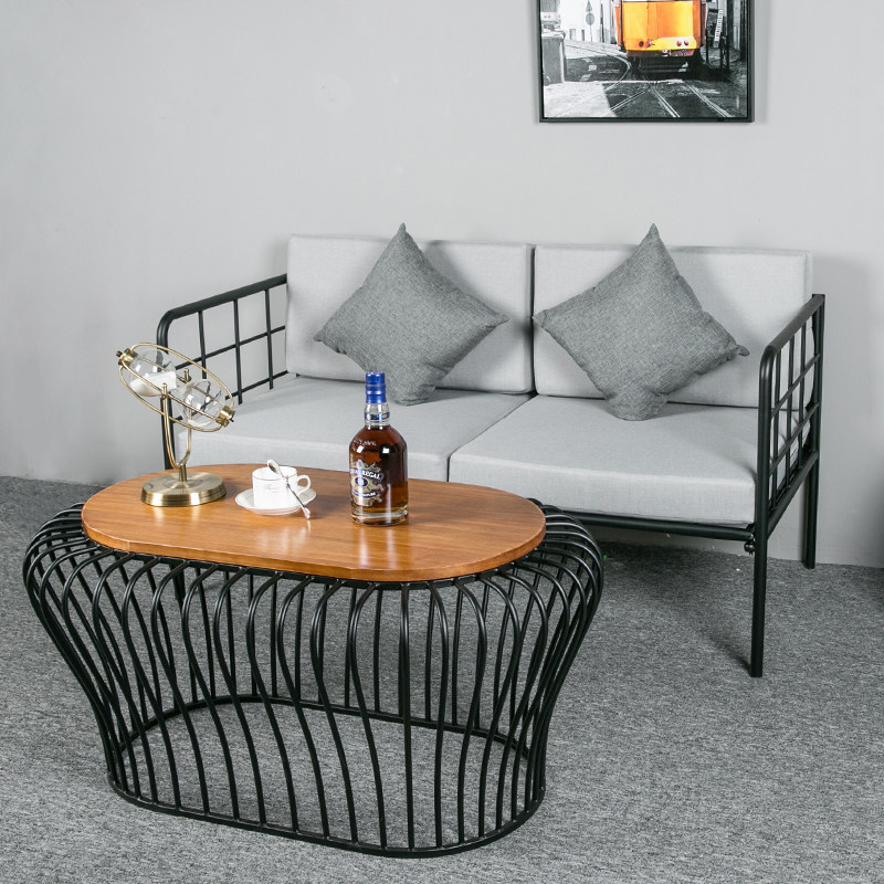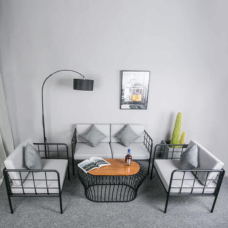 Nordic creative fabric sofa chair living room wrought iron sofa combination industrial style milk tea shop single double deck
