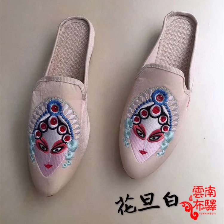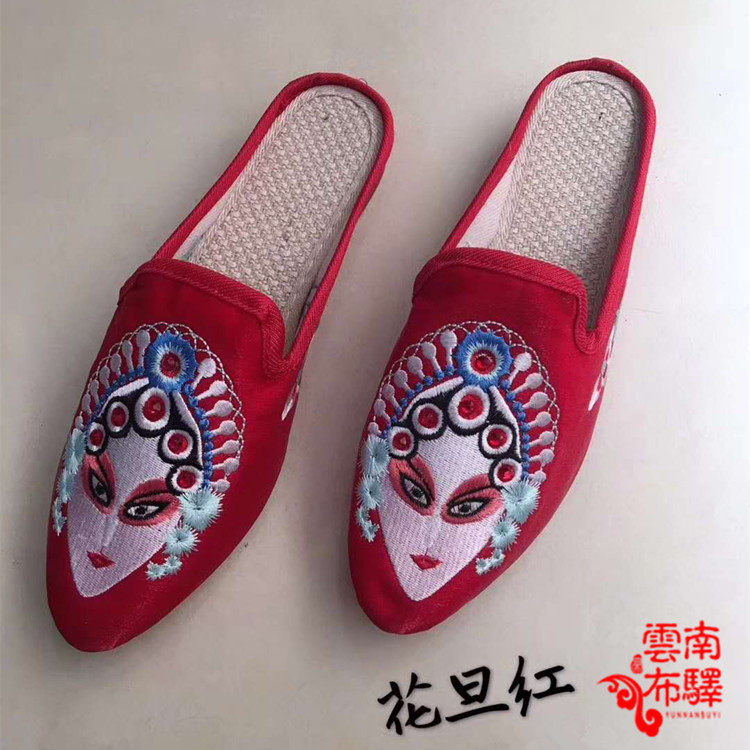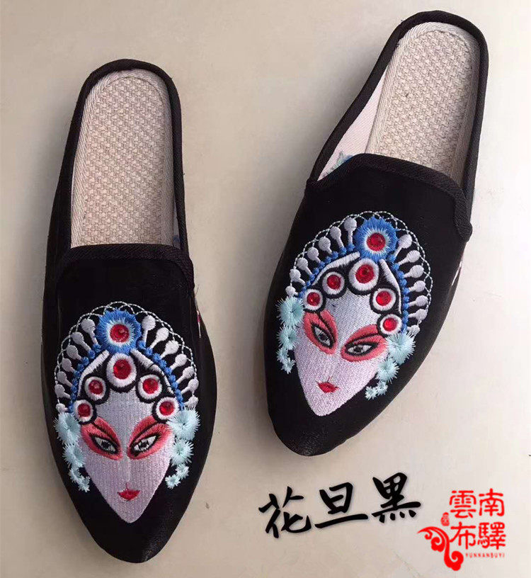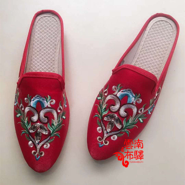 On the new promotion of Chinese style old Beijing Joker comfortable cloth shoes women's flat heel embroidery Hua Dan fashion half-drag shoes