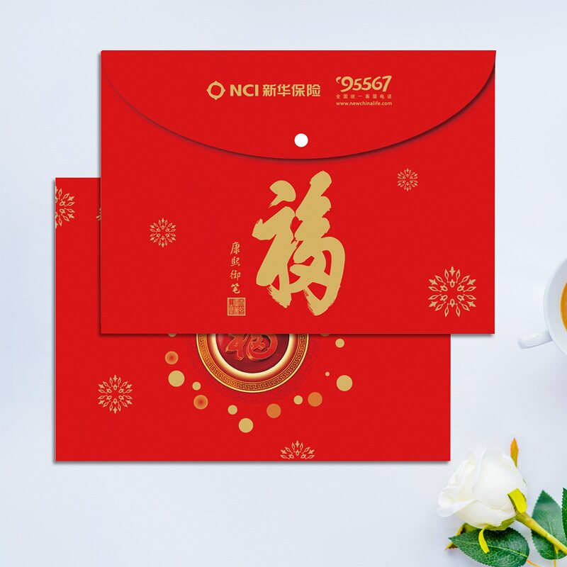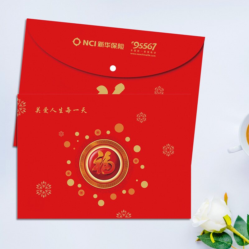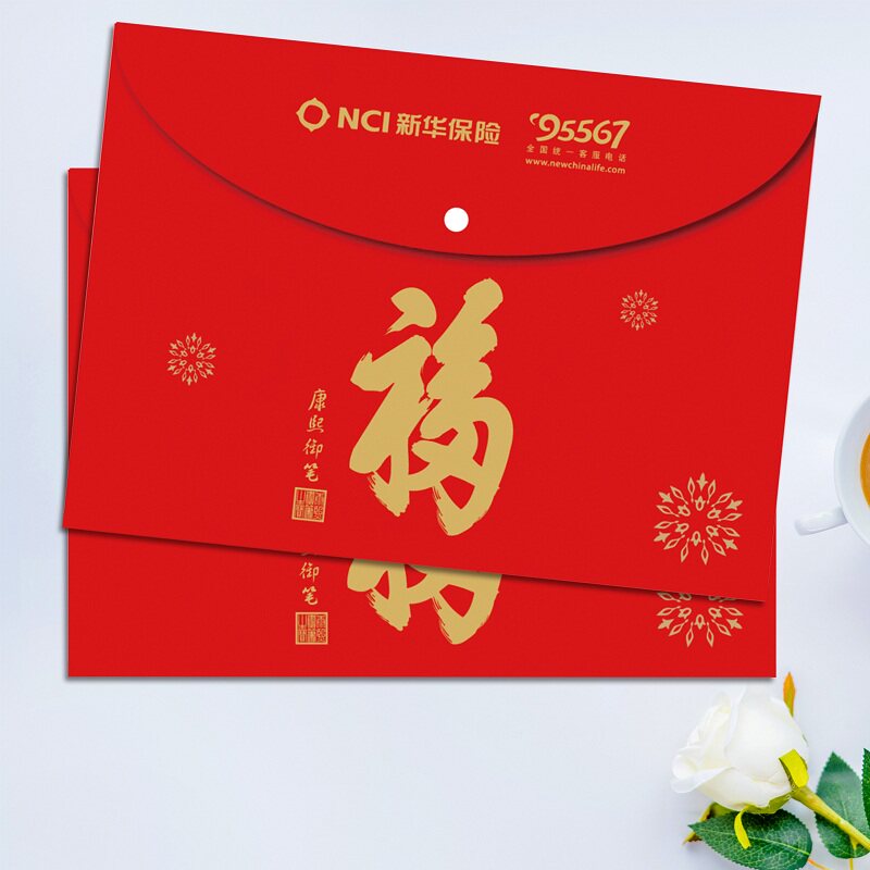 Big red Xinhua insurance gift insurance policy bag information bag plastic button bag policy cover file bag