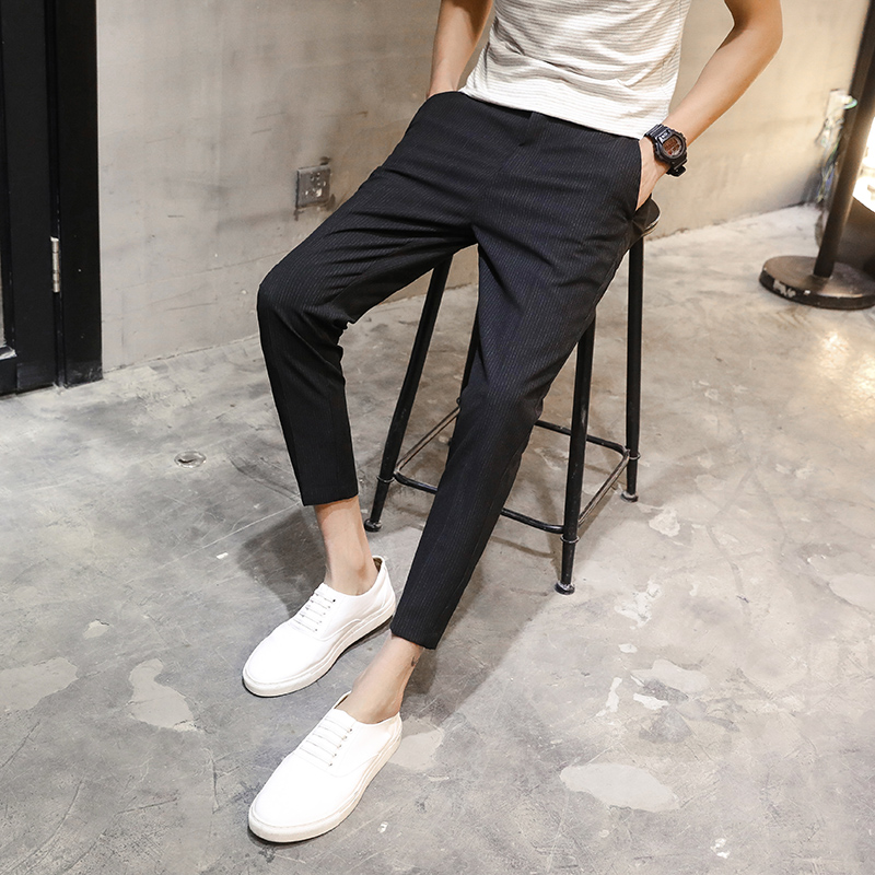Tide brand spring and summer long pants men's casual pants striped nine-point pants men's pants Korean style trendy slim feet pants