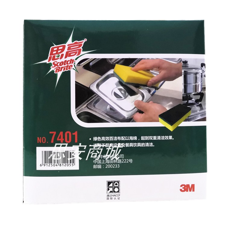 3M Sigh high 7401 sponge Baise cloth Home Dishwashing Dining Cafeteria Hotel Rear Kitchen Brush Pot Sponge