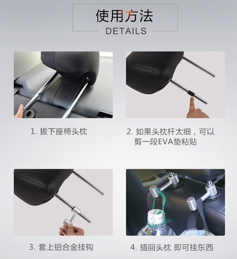 Car Supplies Hook Upscale Aluminum Alloy Car Seat Back Head Pillow Concealed Creative On-board Backseat Hook
