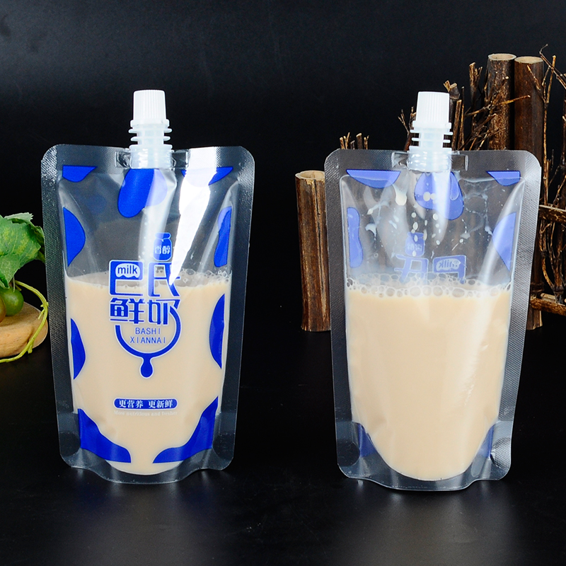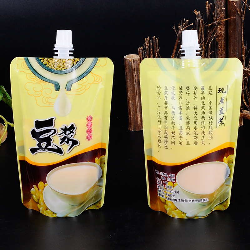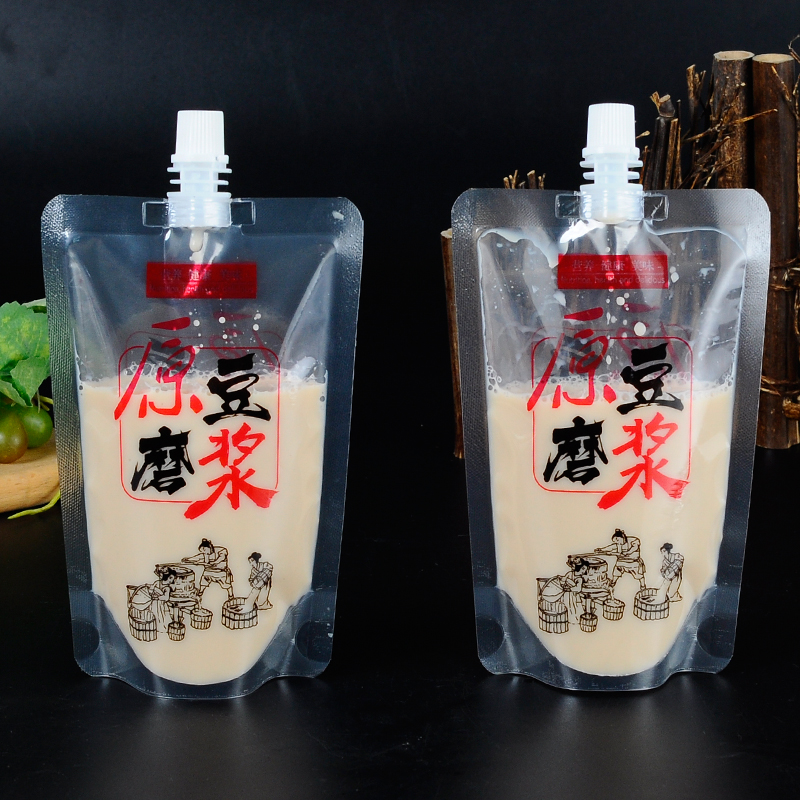 Soy milk bag Stand-up nozzle bag Transparent breakfast drink juice bag Disposable portable packing bag Commercial