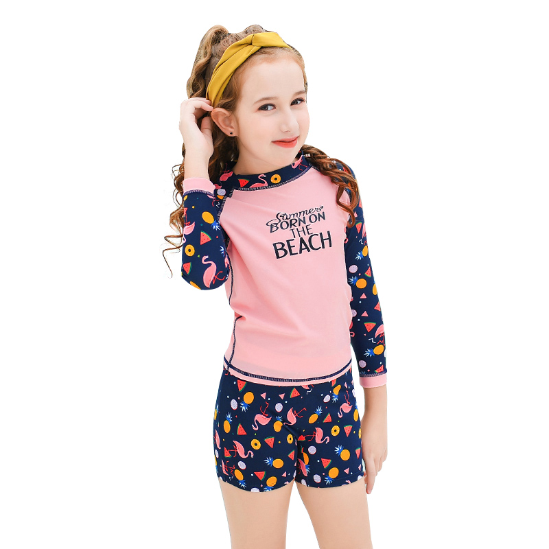 Children's swimsuit girls CUHK Overweight Code Conservative Two-piece Long Sleeve Four-corner Pants With Chest Cushion Summer Swimming Dress