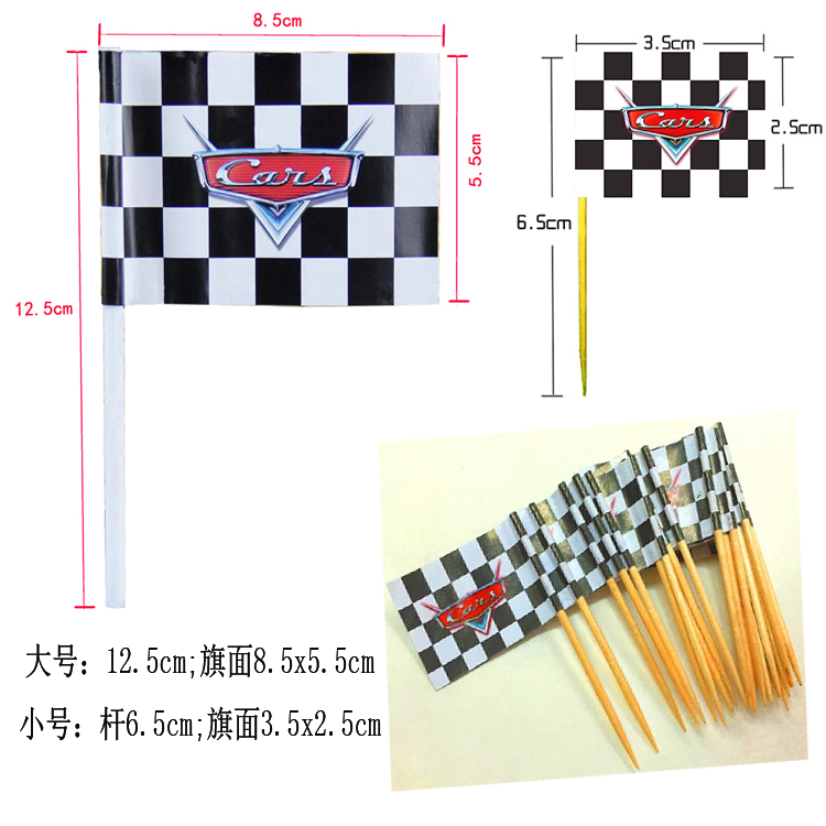 100 sets of birthday cake plugins fruit F1 car black and white grass tooth flags