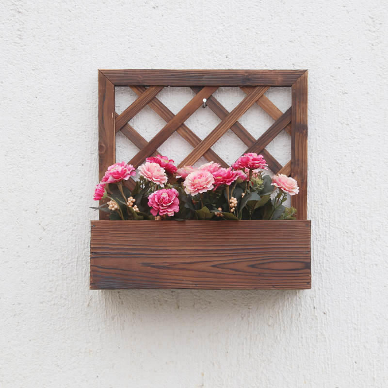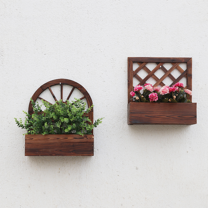 Anti-corrosion wood flower stand balcony wall hanging decoration indoor wall hanging wall plant flower shelf hanging wall flower pot hanger