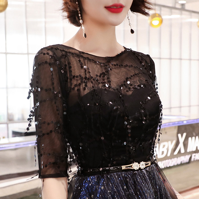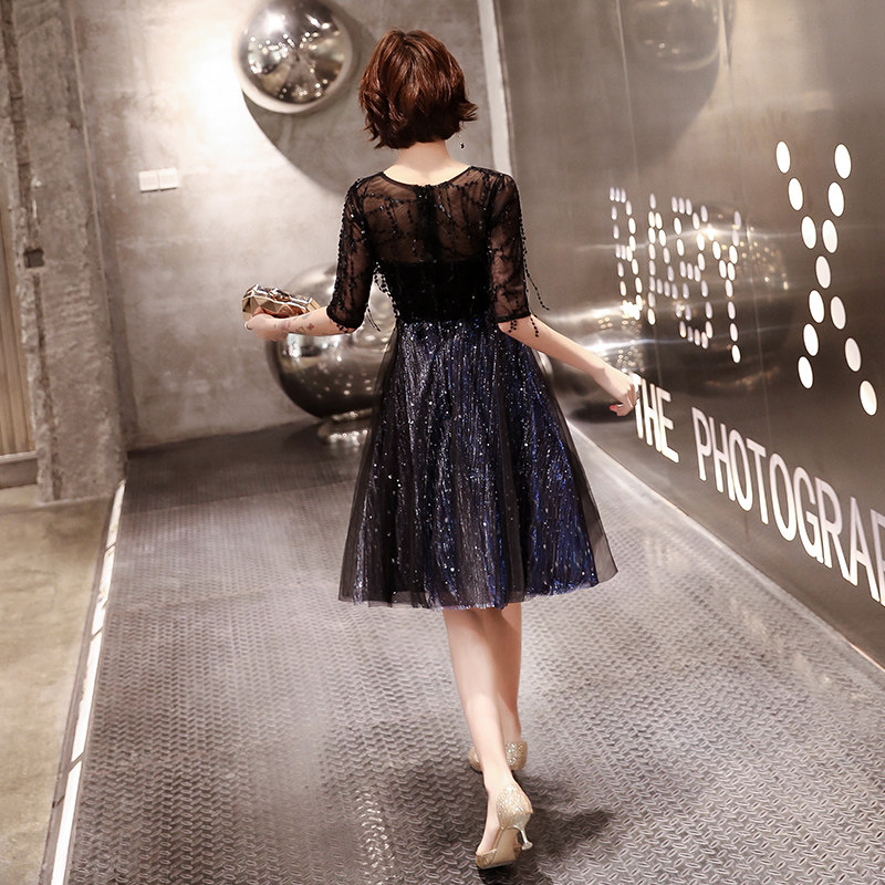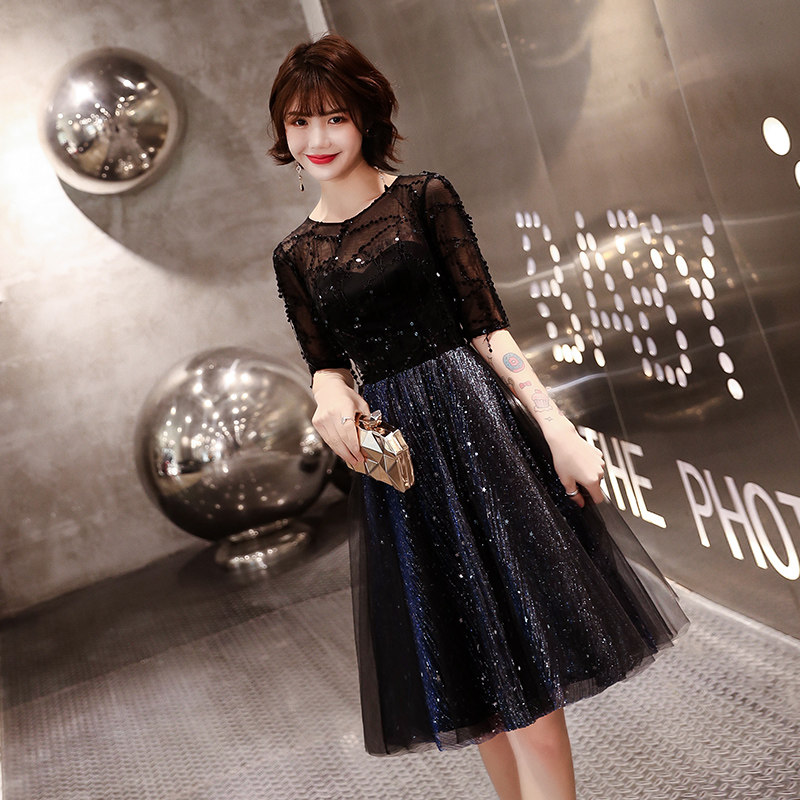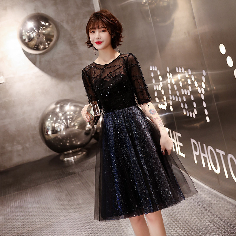 Black small evening dress skirt women's 2022 new aura queen lady temperament host short style can be worn at ordinary times
