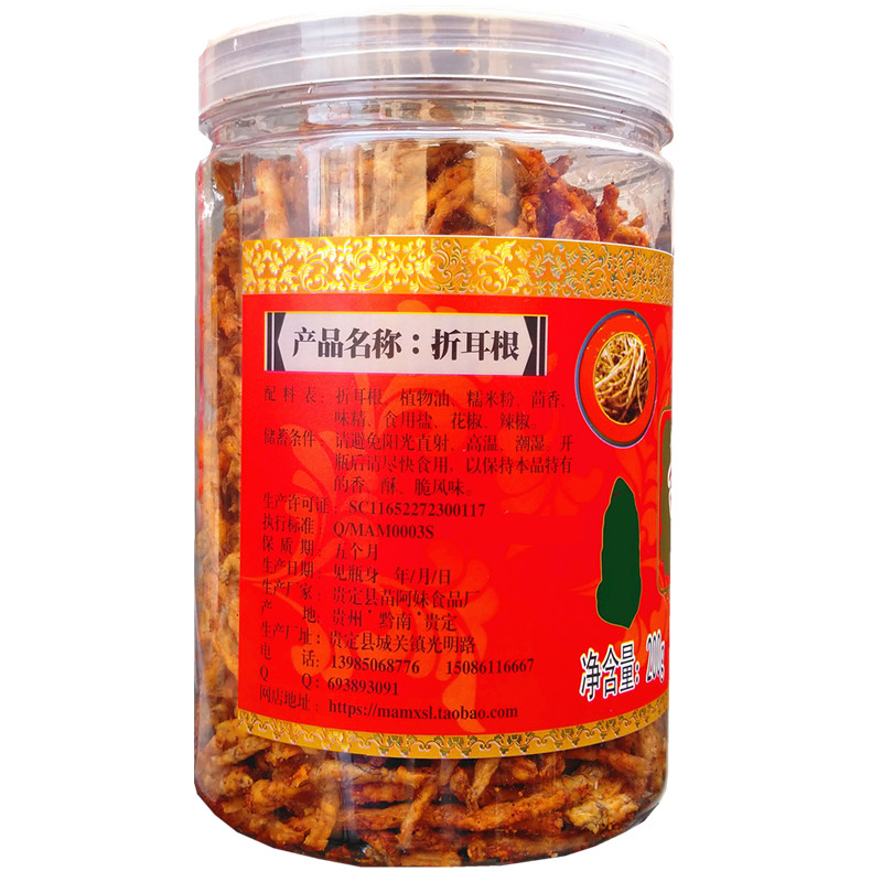 Guizhou Terrific Miao Agirl Spicy Folding Ear Root 200g fried houtover and crisp snacks ready-to-eat ready-to-eat